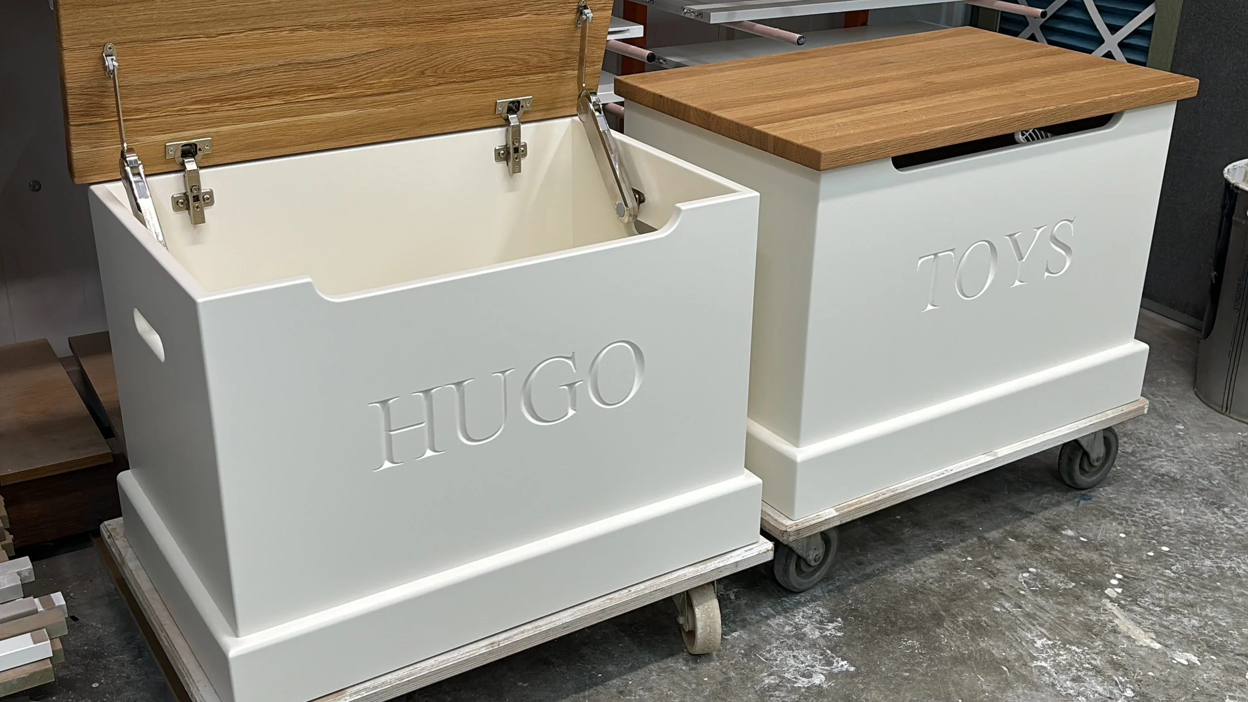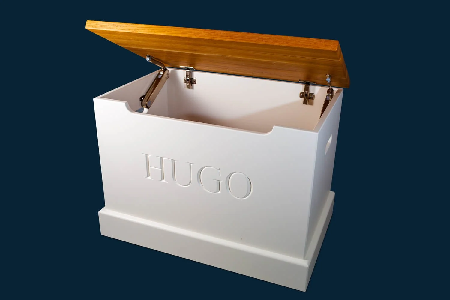 These beautiful children’s toy chests are crafted to order. They are entirely bespoke and can be elegantly engraved with a name, a favourite song lyric, a cherished poem, or a meaningful quote.
